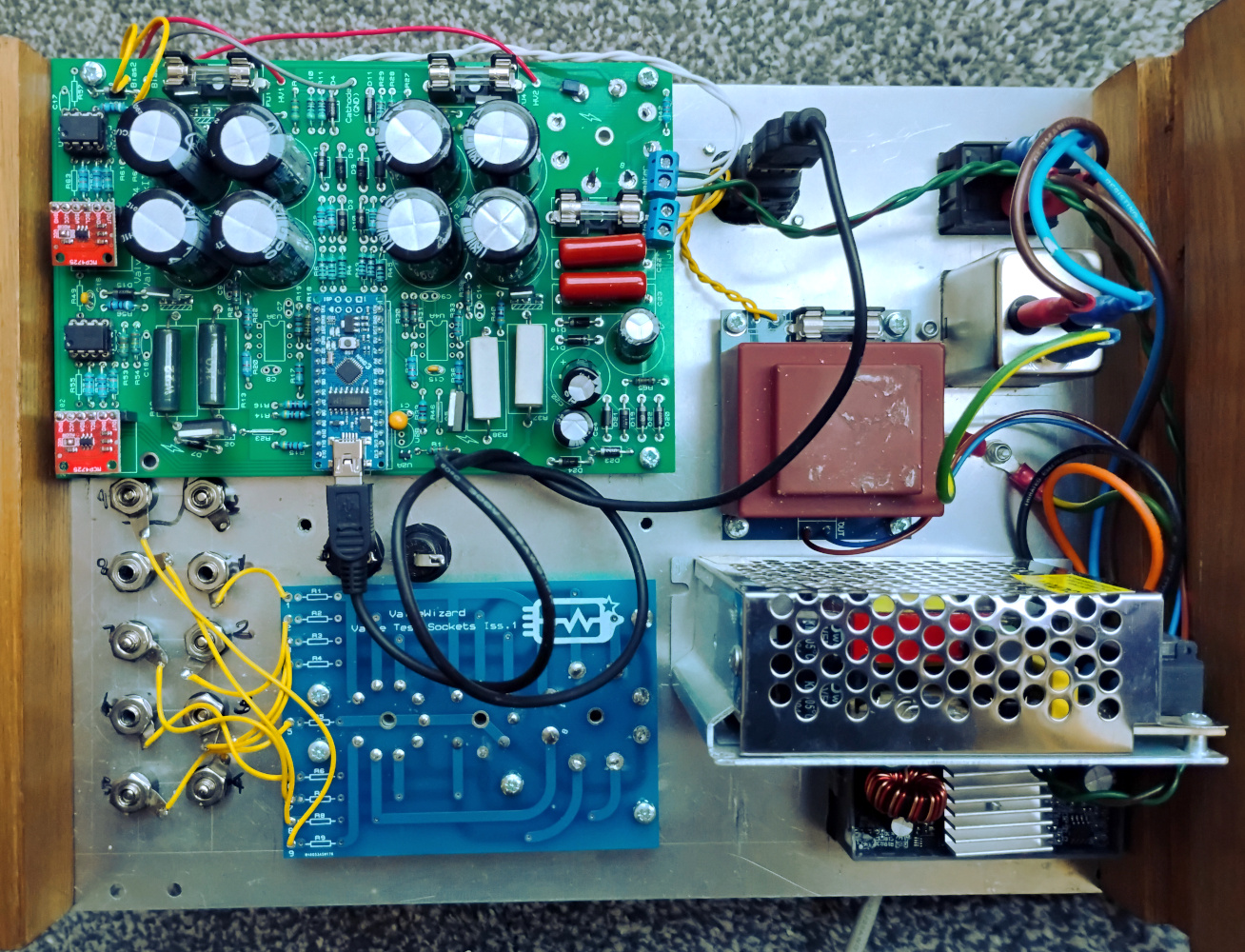 I redesigned it all to go onto one PCB. As a bonus, there was space to include an octal test socket ready to measure 6V6s, EL34s, 6L6s and other pin-compatible valves.