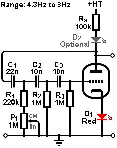 or a pentode. The ECC83 / 12AX7 is the obvious choice. A 12AT7 will also an work but may not give such a long working life before it drops below the threshold and stops oscillating.